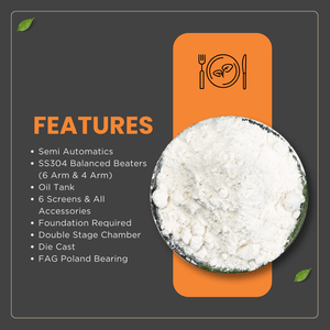 The MS (Mild Steel) Stand and Stainless Steel Balanced Hammers contribute to the machine's robustness and consistent milling performance. The double chamber mechanism, along with a blower mechanism, ensures efficient flour separation, resulting in superior quality flour suitable for various commercial purposes.