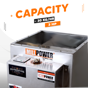 Mill Power Pvt Ltd's 2 In 1 Pulverizer Machine is a testament to efficient dual functionality in grain milling. This machine, featuring a 3 HP Single Phase Electric Motor, is capable of handling approximately 30 kg/hr, making it suitable for medium to large-scale milling operations. It's designed to offer both fine and coarse grinding options, providing versatility and convenience in a single machine.