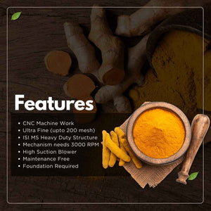 | Grinding Materials | Turmeric, Dry ginger, Black Papper, Wooden Saw Dust(50% Cap.), Dry Leaves, Lime Stone, Kattha, Kanku, Crayon For Fine Grinding |