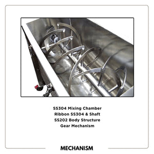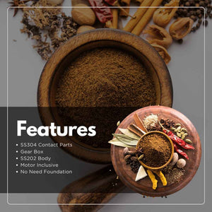 Operating at a ribbon rotation speed of 35 RPM and with a machine weight of 145 kg, the Powder Mixing Machine ensures thorough and gentle blending of ingredients. The Full Body SS304 food-grade Stainless Steel bowl and SS202 body structure underscore the machine’s commitment to quality and hygiene, which are paramount in sensitive industries like pharmaceuticals and food processing.