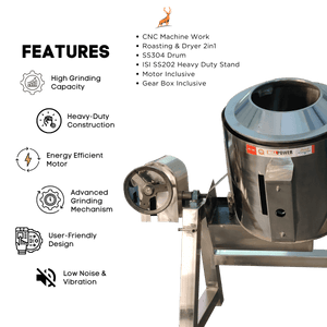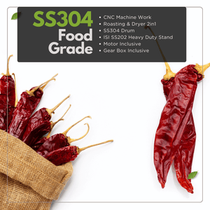 Constructed with a Full Body SS304 food-grade Stainless Steel bowl, the Roaster Machine prioritizes hygiene and durability. The SS202 body structure adds to its robustness, making it capable of withstanding the demands of continuous operation in a commercial or industrial environment. This combination of stainless steel and MS construction not only extends the machine's lifespan but also ensures compliance with food safety standards.