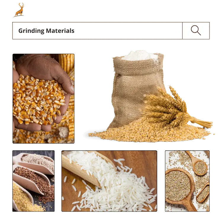 Grinding Materials wheat, maize, bajra, jowar, rice, pulses (as per model) (depends on HP, material & mesh)